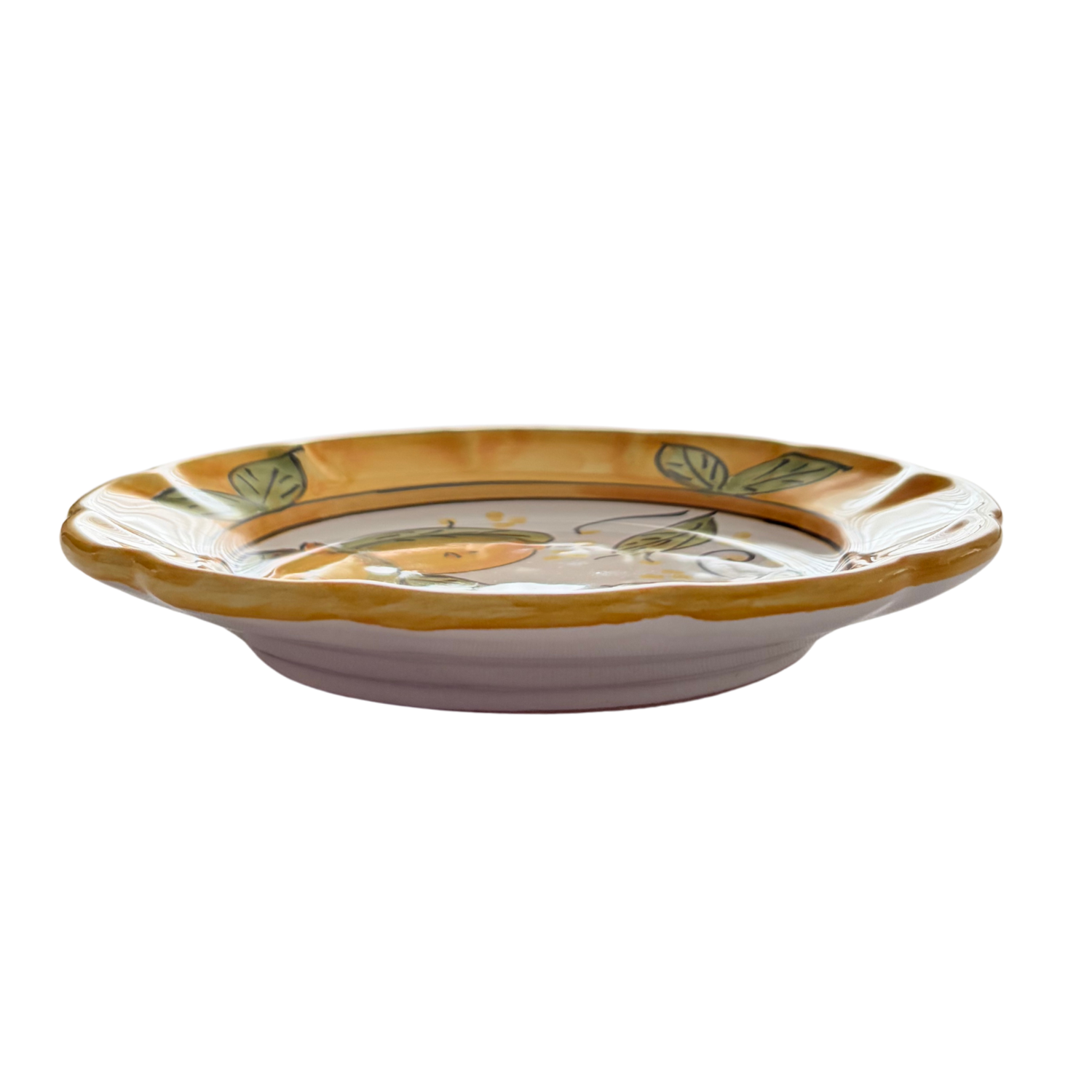 Inspired by the sun-drenched orchards of the Amalfi Coast, the Citrina plate features hand-painted lemons framed with warm golden tones. Each plate is shaped and painted by artisans in Vietri sul Mare, making every piece truly one-of-a-kind.
