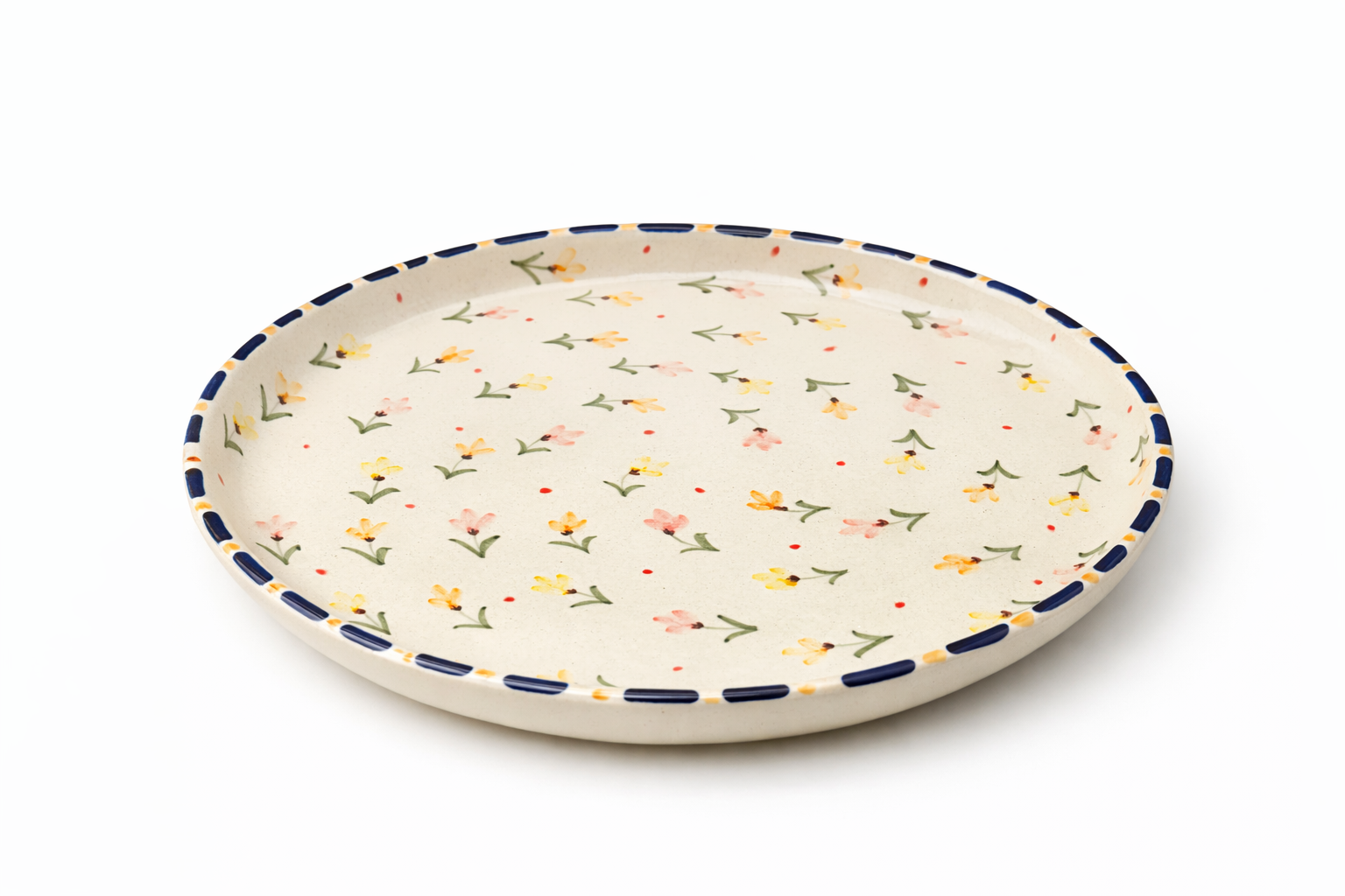 Daisy Plate bring soft floral charm to your table with this beautifully hand-painted ceramic dinner plate. Delicate scattered blossoms in warm yellow and blush tones create a light, romantic feel—perfect for everyday dining or special gatherings.