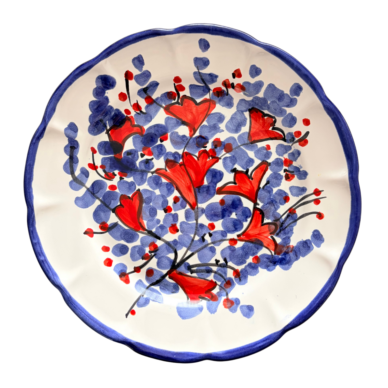 Inspired by the vibrant wild poppies that bloom along the Amalfi coast, the Papavero plate is handmade and hand-painted in Vietri sul Mare using traditional ceramic techniques. The bright red florals and deep blue border bring warmth and color to the table, capturing the joy of shared meals in the sun.