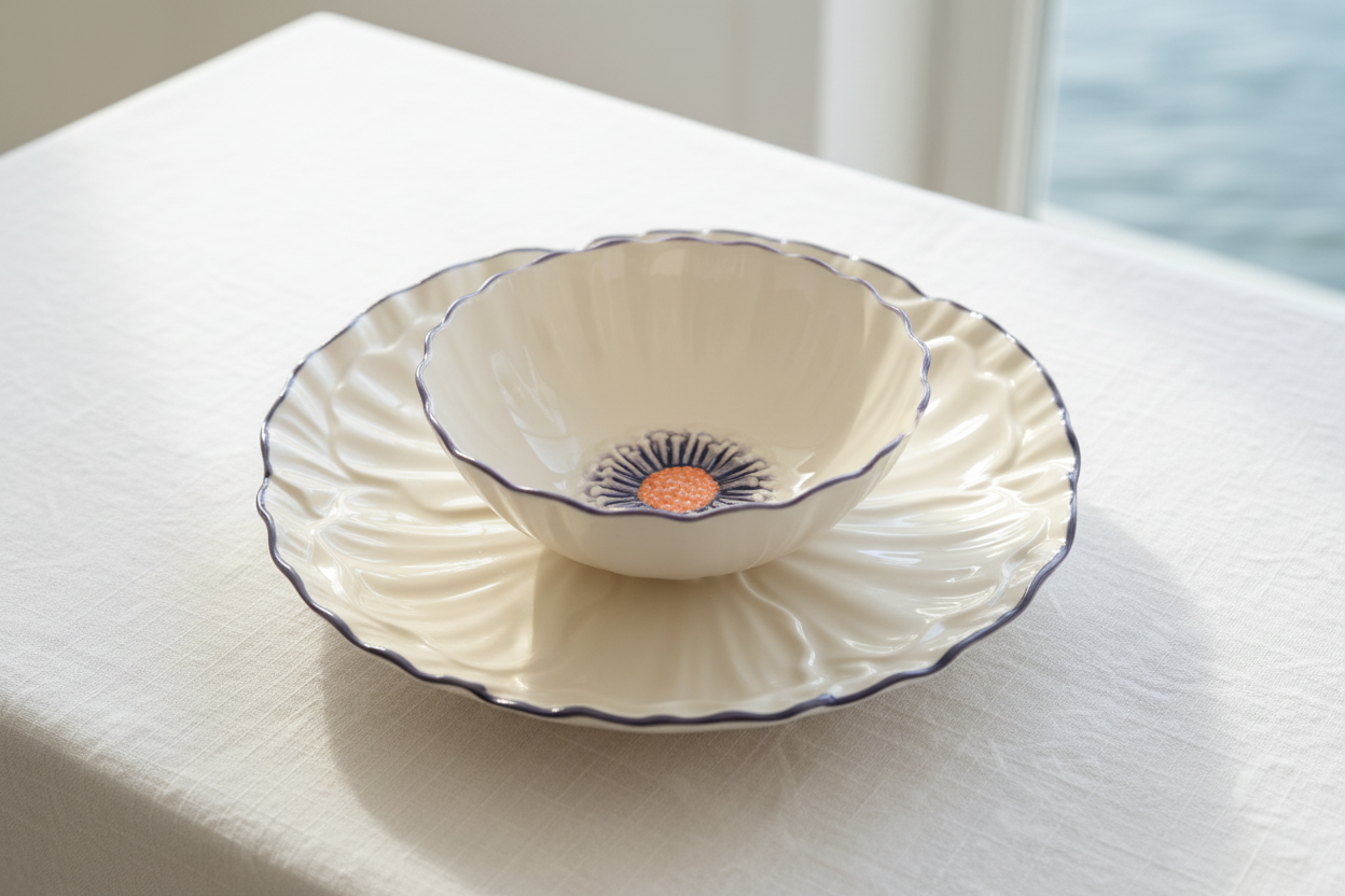 Petal Lilac Ceramic Dinnerware Set of 2 – Plate & Bowl | Table Bella