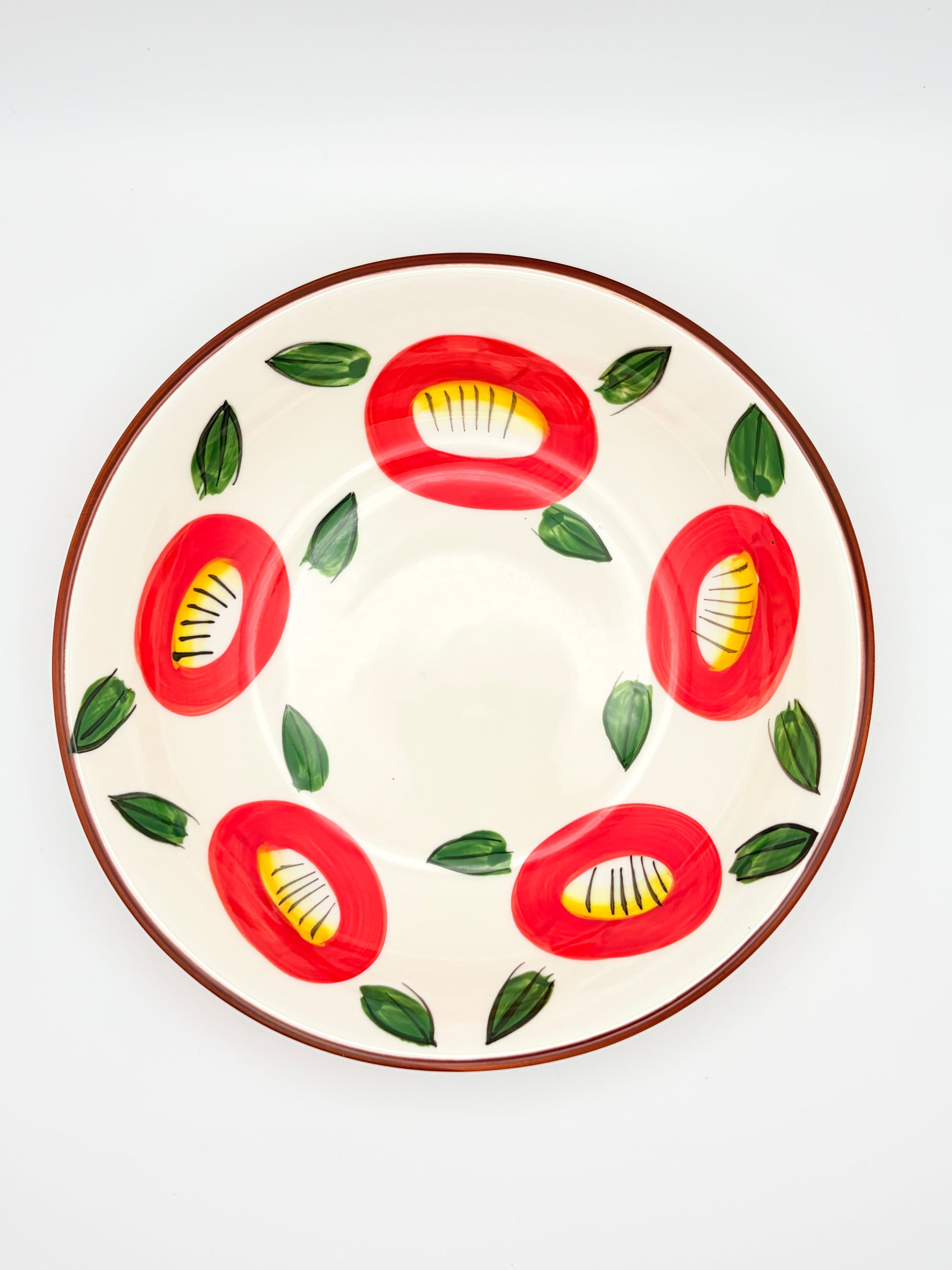 Inspired by vintage Korean tableware, the Red Camellia plate brings charm and nostalgia to the table. Featuring hand-painted underglaze details, this deep 7.6" plate is perfect for breakfast, pastries, appetizers, or small shared dishes.